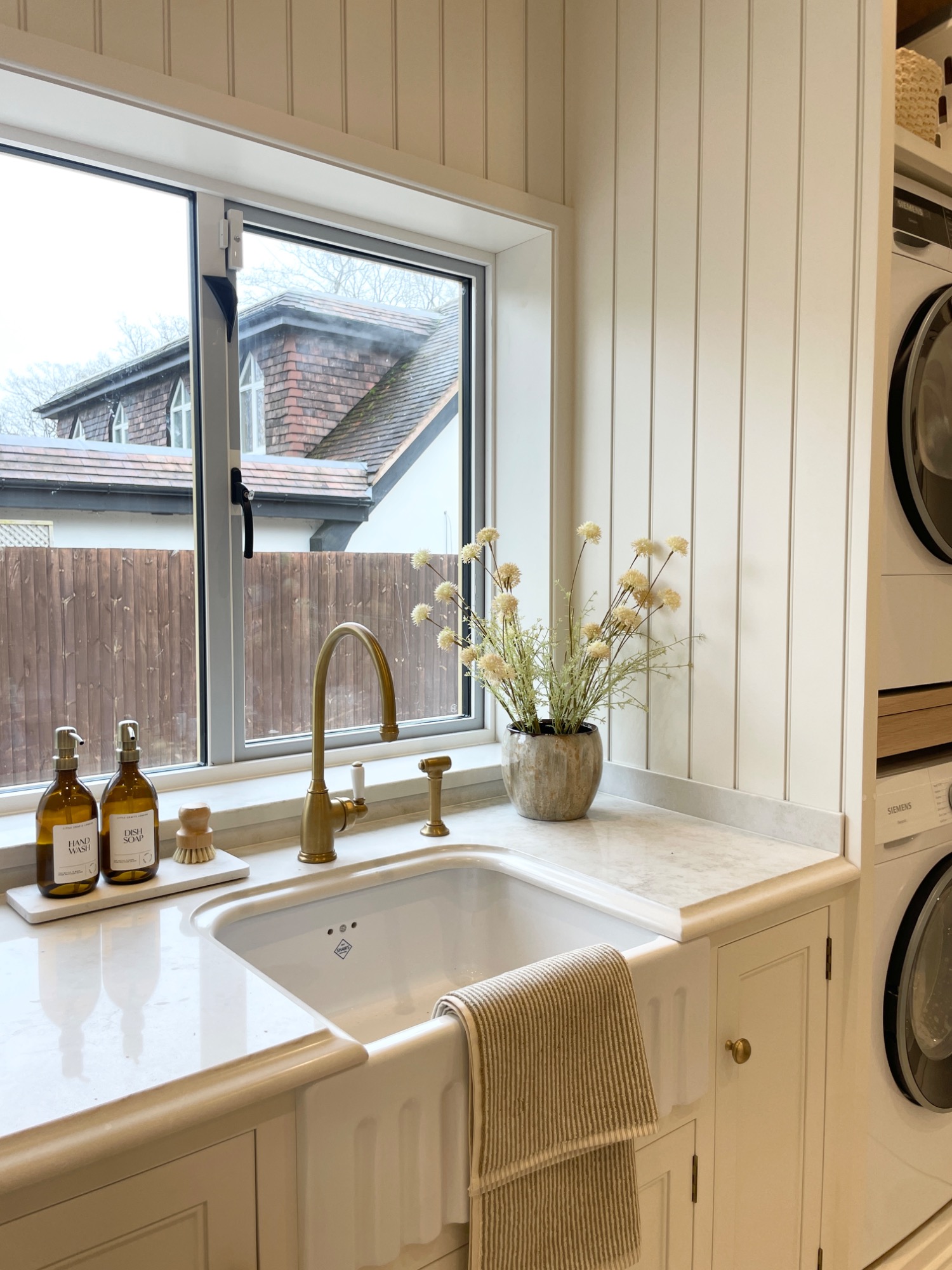 A bespoke designed utility room, showcasing a thoughtfully elevated blend of practicality and beauty. Retaining the key requirements of the hardest working space in the house, but creating everyday joy in it's use.